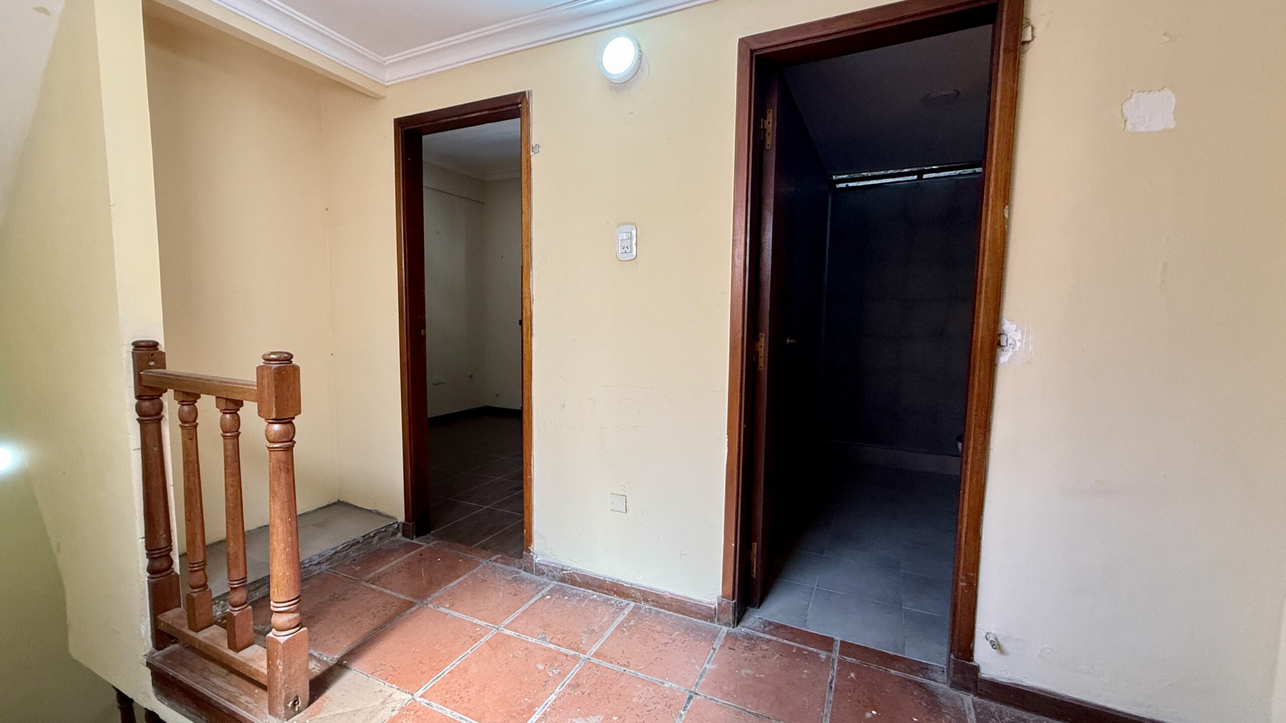 Planta alta: 3 habitaciones, balcón y baño.